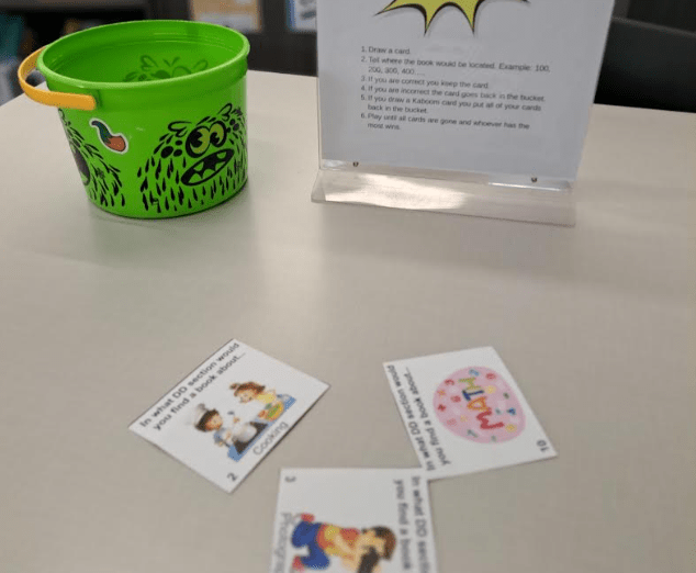 Secret fact about the game…IT NEVER ENDS. Eventually, somebody gets a Kaboom! card which means they have to put their cards back in the bucket thus adding to the cards in the bucket over and over again. For library teachers this means students are engaged and learning the full 10 to 15 minutes of the library centers rotation.