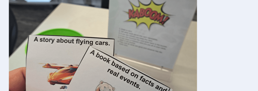 As you can see, this game can be done with any concept, just switch book genre with one of the other library related Kaboom cards.
