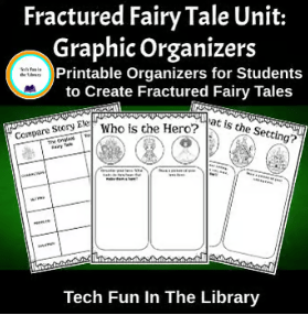 After that, I introduce fractured fairy tales — the silly or twisted versions of the originals. We read lots of those too. The older kids, grades 4–6, get to write their own fractured fairy tales, and they always come up with such creative and funny ideas. I have created some graphic organizers that work well for helping them to gather their thoughts and get those creative juices flowing. While students may start with a groan about writing it usually turns out to be one of their favorite projects.